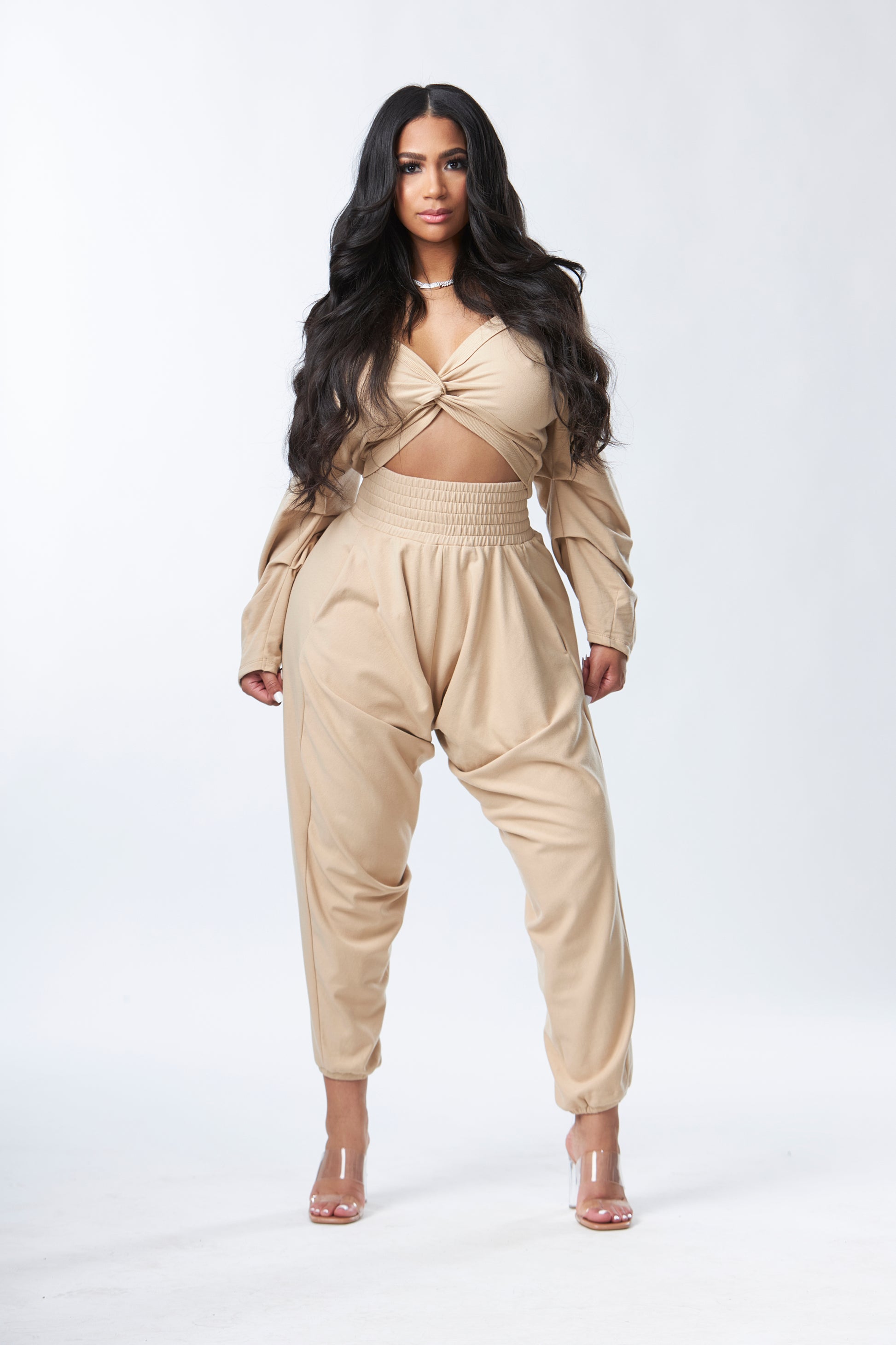 ‘Taking flight’ is our off-shoulder top and harem pant set. Featuring a cropped three-quarter length. The neckline is wide enough to pull down over the shoulders to expose the upper chest and upper back. The harem pants feature a loose, comfortable fit. They have a comfortable elasticized waistband and elastic at the ankles.