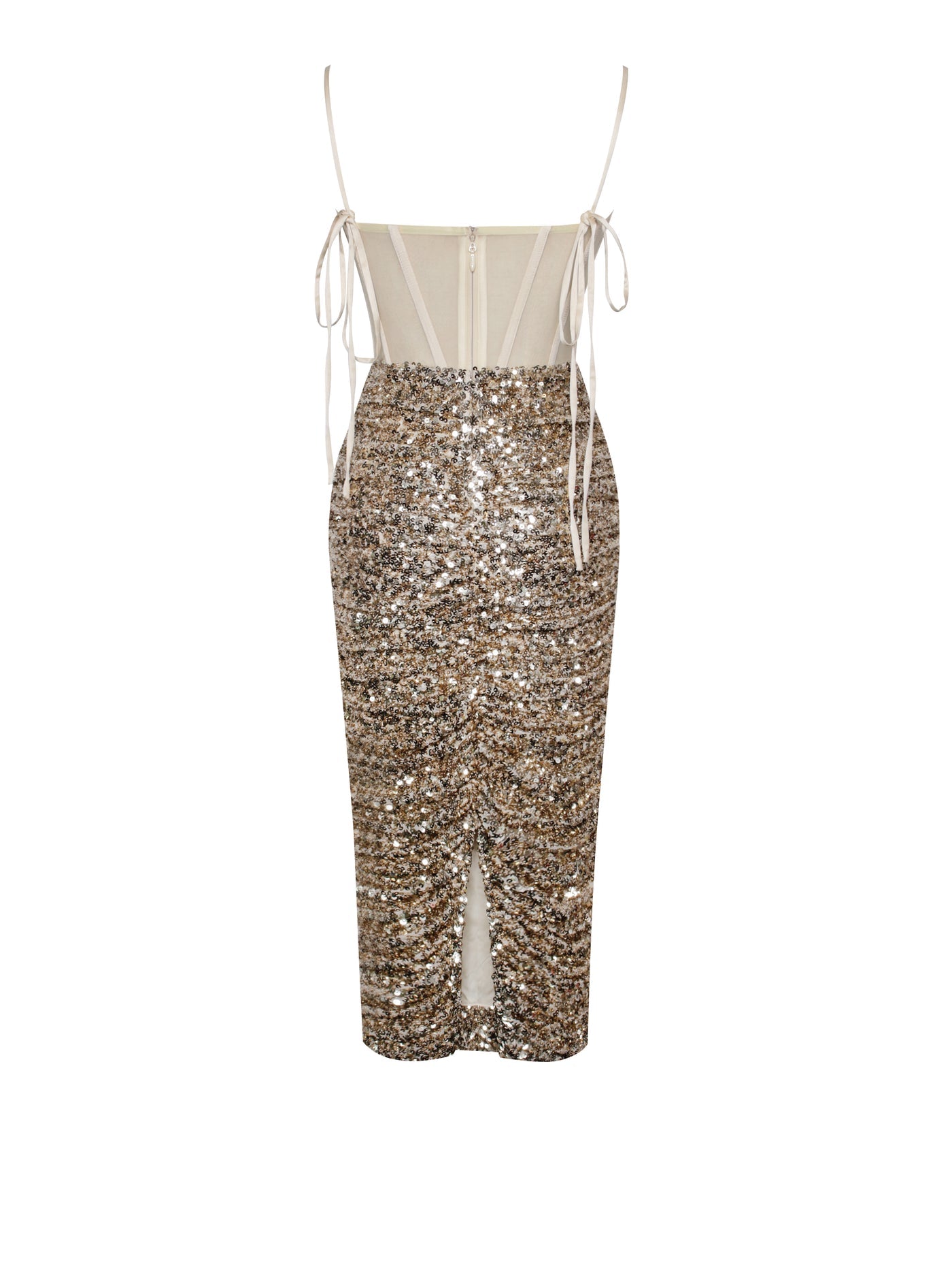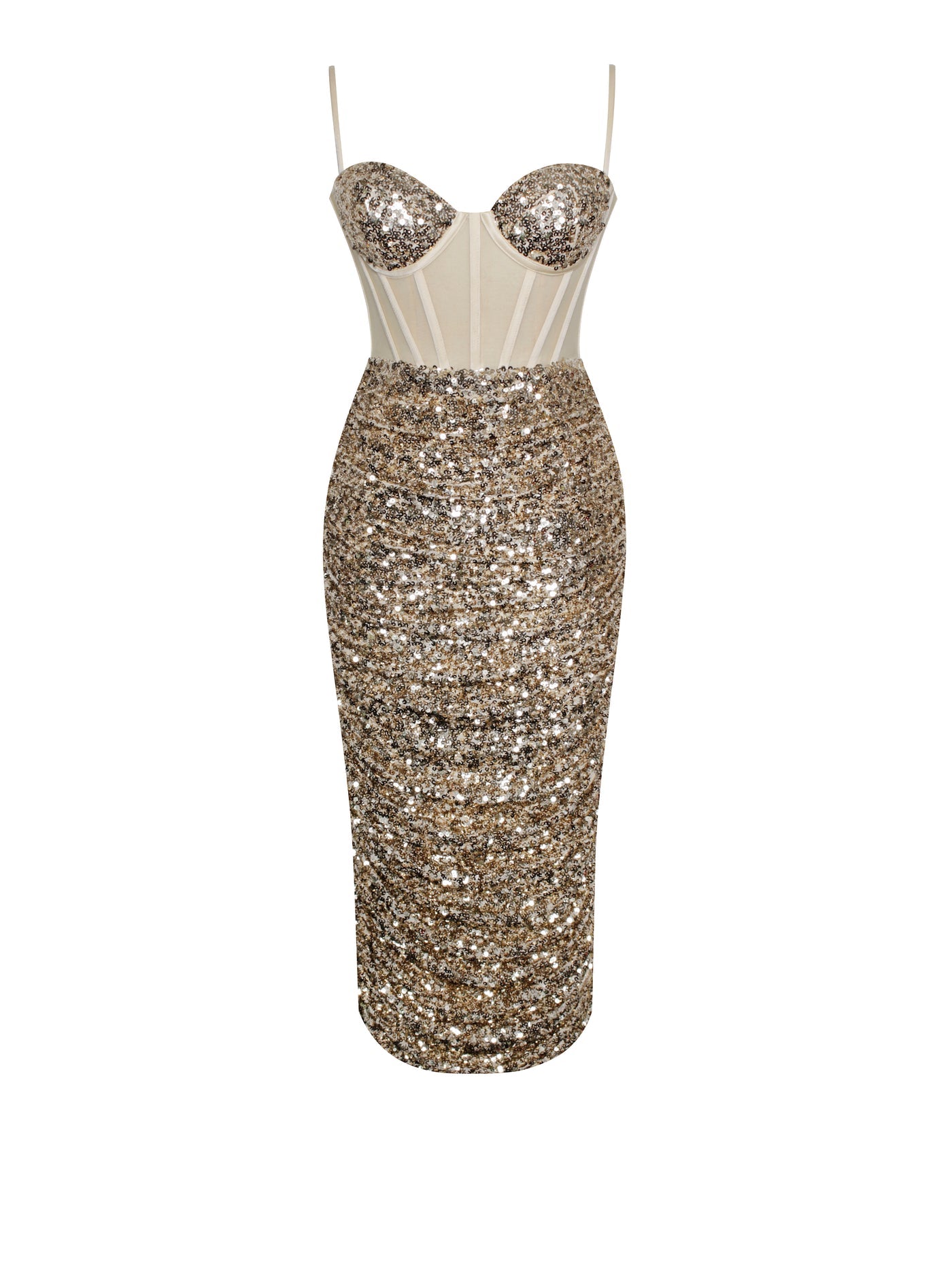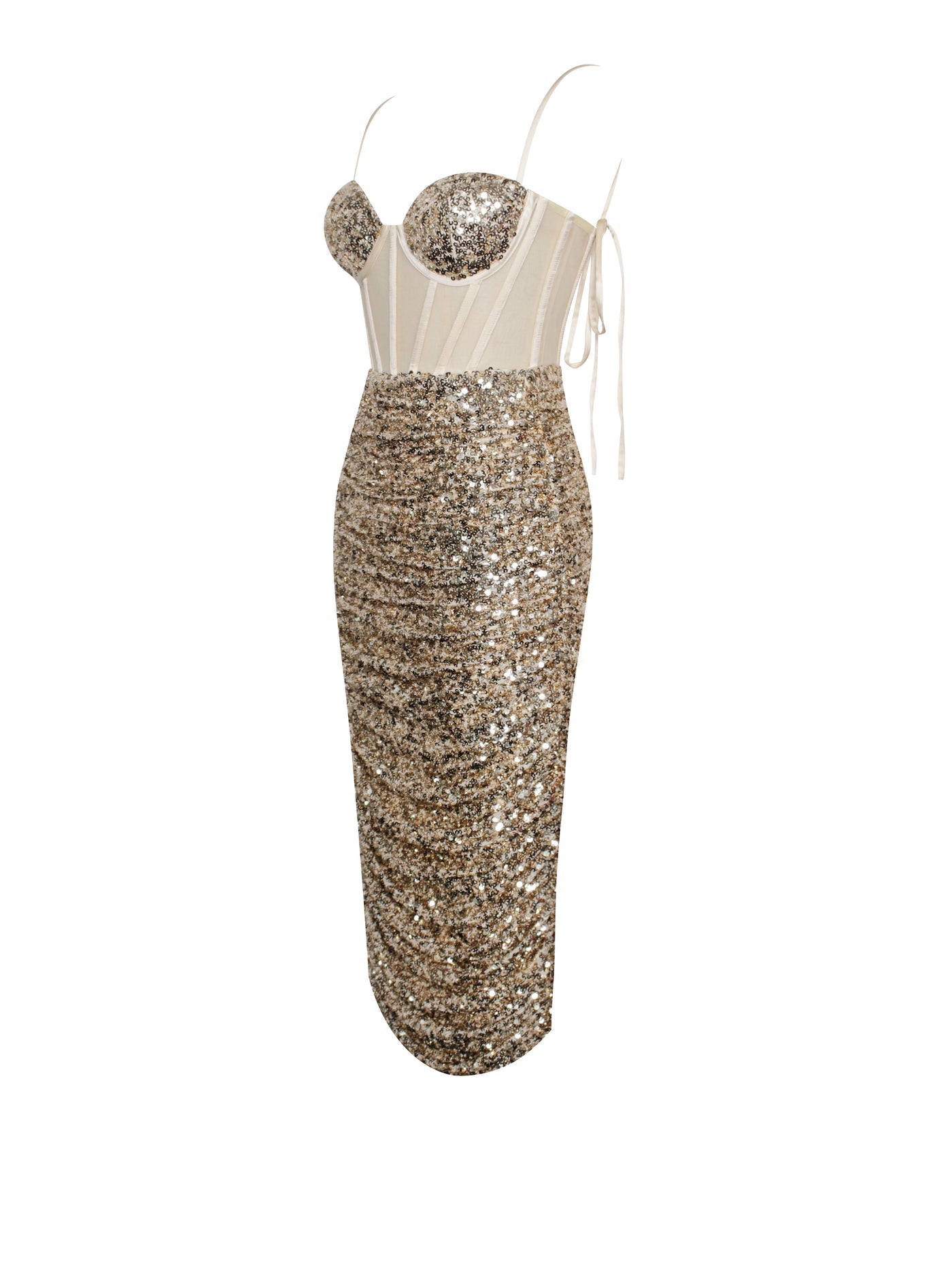 ‘Danica’ is our pre-order Sequin / Stretch Mesh / Boned Corset with Low Stretch the Length Approx 40.1inch / 102cm (Without strap) Model Is Wearing A Size XXS (US-0) Model Is 5'9½''