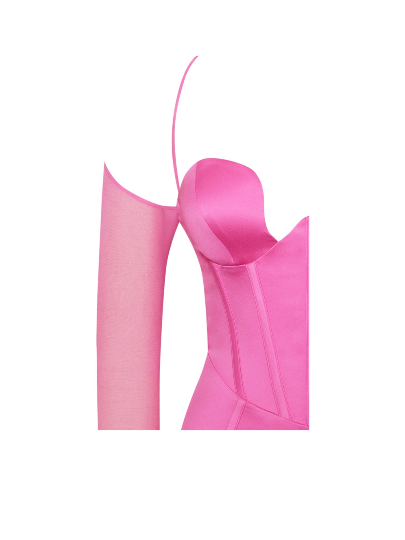 - Materials: Double Duchess Luxe Satin / Stretch Mesh / Boned Corset