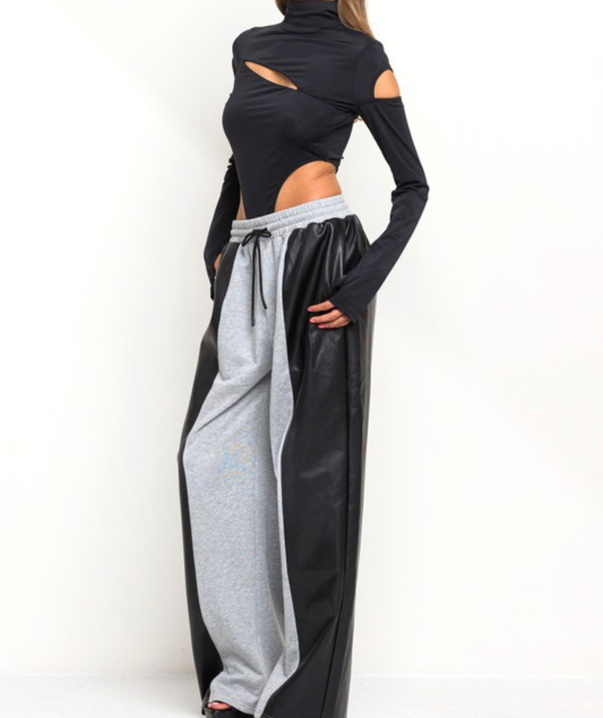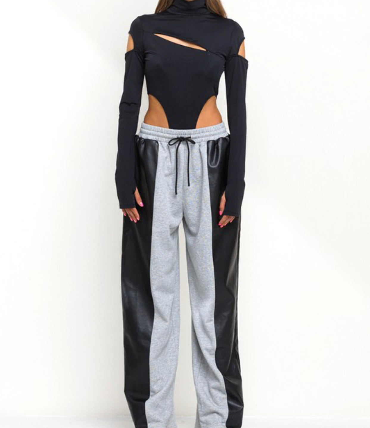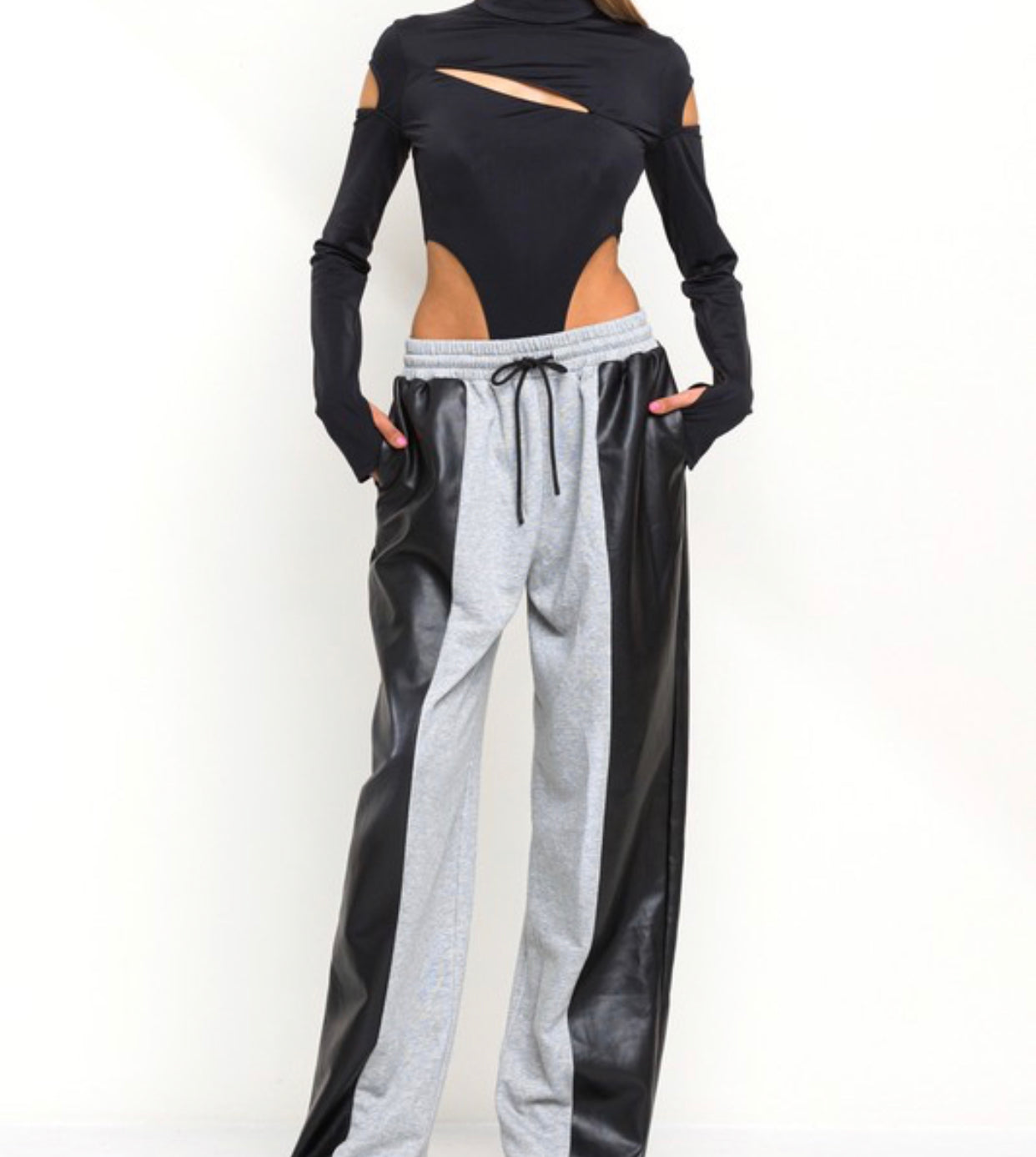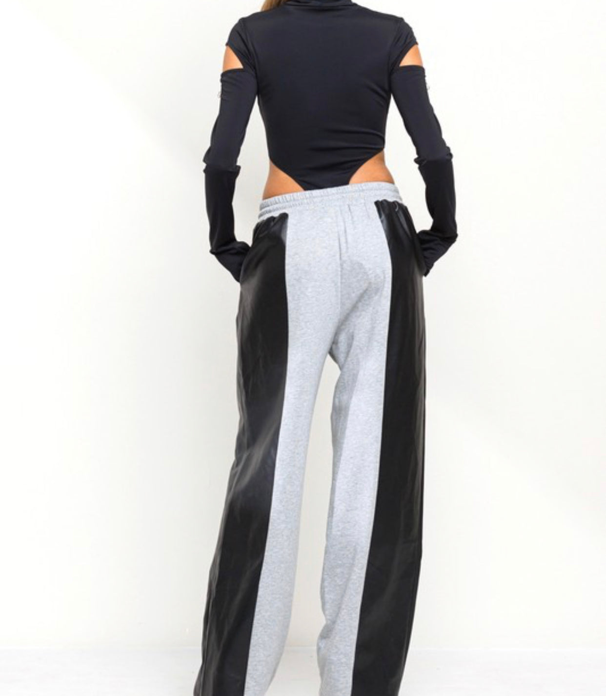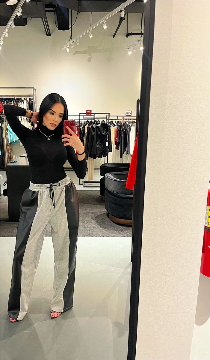 Roxy is our half and half faux leather detail and sweatpants
