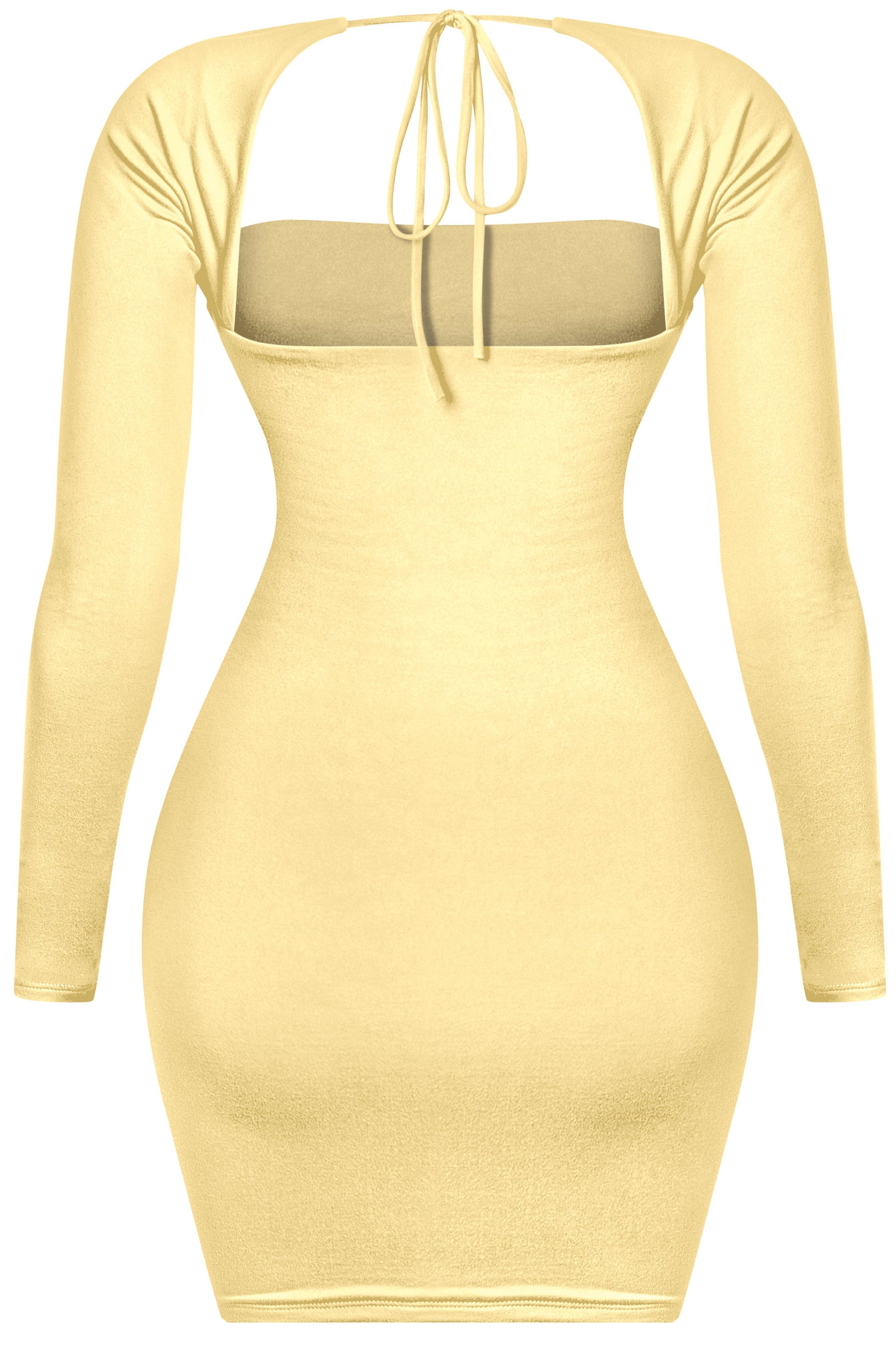 Our Long Sleeve Square Neckline Dress with a captivating Back Cutout, Mini Fit, Stretchy fabric, and a Back Drawstring Tie embodies timeless elegance with a modern twist. Embrace your inner fashionista and make a statement with this dress, ensuring you exude confidence and sophistication at every occasion.