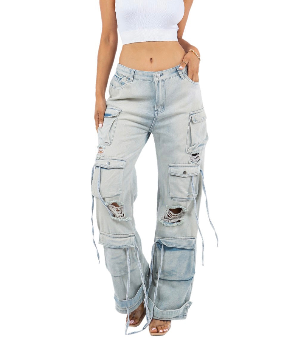 Introducing our cargo jeans style denim pants – a perfect blend of utility and style. With their distinct belt loops, these pants offer a secure fit while allowing you to accessorize with your favorite belts. The multi-pocket design not only adds a touch of functionality but also contributes to a sexy, edgy appearance. Embrace the trend of the oversized look, which adds an effortlessly chic element to your outfit. Whether you're out for a casual day or aiming for a fashion-forward statement, these cargo jeans exude confidence and versatility, making them a must-have addition to your wardrobe.